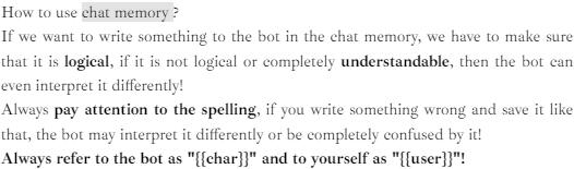 But the chat memory can also be used for other purposes, we can give commands to the bot in it so it will work better or differently, I will mostly write about this part on this site.